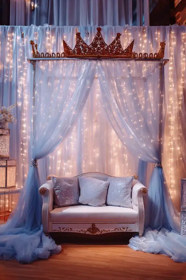 Decor Elements: Carriages, tiaras, enchanted forest backdrops