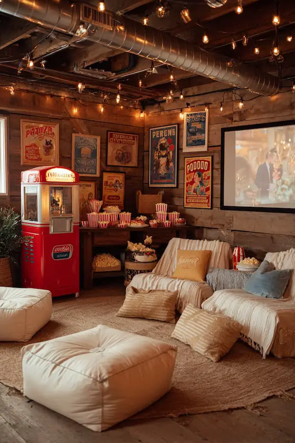 Example: Guests can enjoy a popcorn bar, cozy up with blankets, and settle in for a heartwarming movie marathon featuring romantic classics.