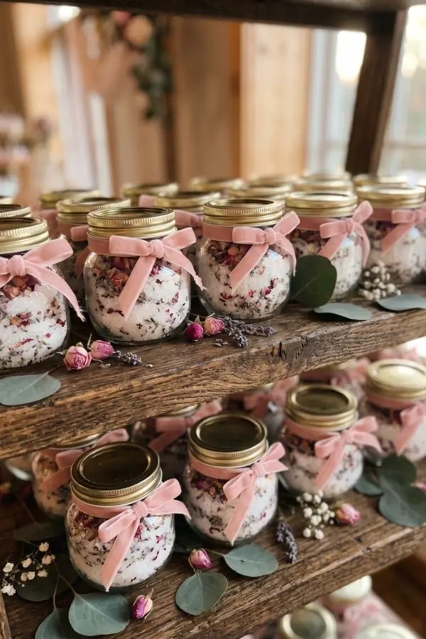 - Floral Bath Salts: Small glass test tubes or jars filled with Epsom salts, dried rose petals, dried lavender buds, and essential oils.