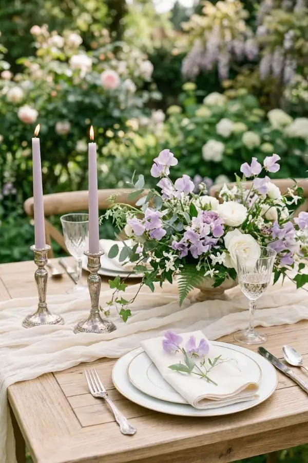 For the longest time, purple was considered a dated wedding color. But let me tell you, dusty lilac has made a massive, chic comeback. When paired with the creamy warmth of French vanilla and the cool elegance of soft silver, this palette feels incredibly ethereal and slightly vintage.